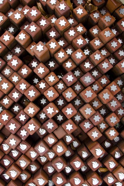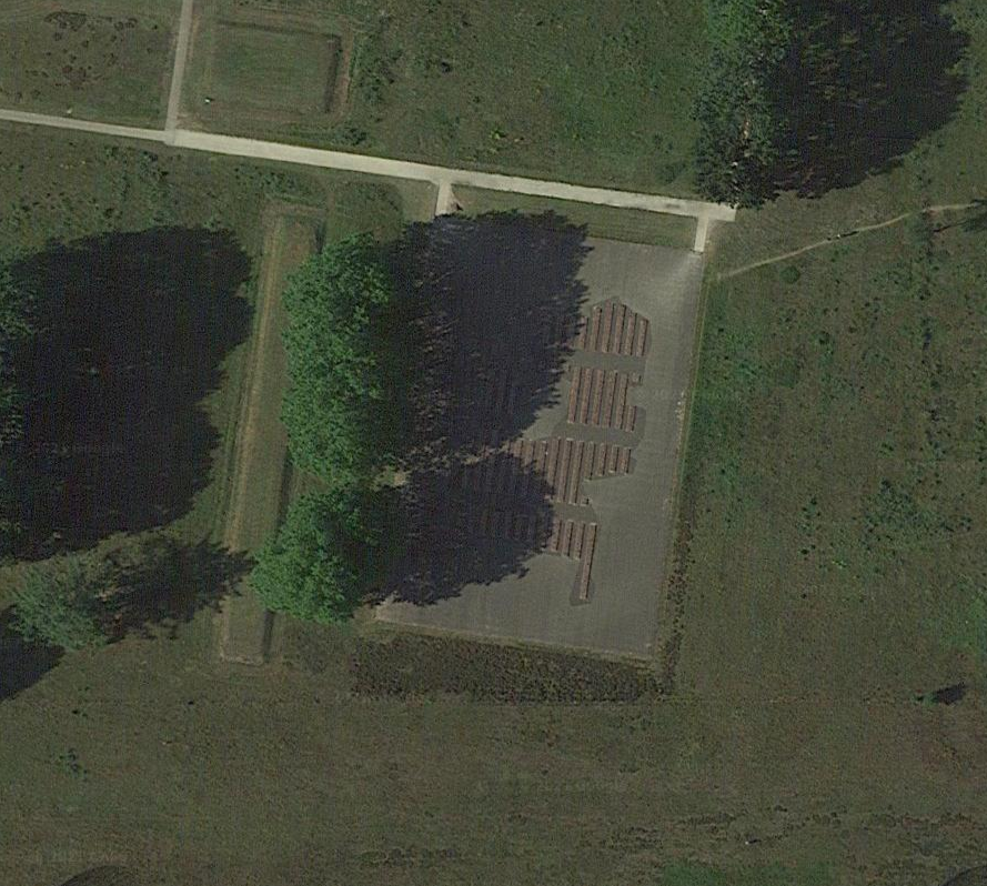 A notable monument within Westerbork is that of the 102,000 stones, located at the former main square of the camp. The monument pays tribute to the people that were deported via the former transit camp in the form of small stones, each representing a single person. Most stones are marked with a symbol: a star of David or a flame, as seen in Figure 2. The stones differ in height throughout the whole monument. Paths separate different patches of stones, allowing visitors to walk in between. Together with the tiling of the surrounding area, the stones take the shape of (the European part of) The Netherlands (as seen in Figure 3).2